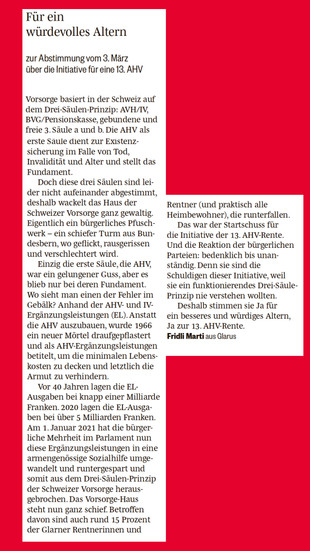 «Allerhand im Glarnerland» über die 13. AHV-Rente